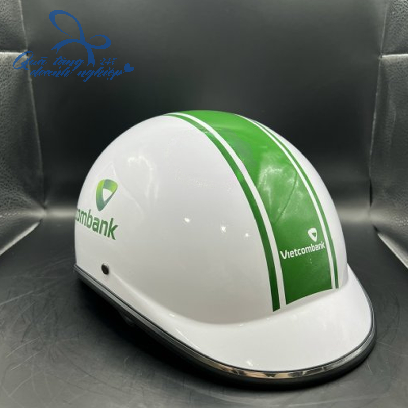 Mũ/Nón Bảo Hiểm 1/2 In Logo – Mẫu 03, Màu Trắng + Xanh Lá